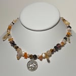 materials: clear quartz, freshwater pearl, glass beads, carnelian, onyx, mother of pearl, tiger's eye, rose quartz.